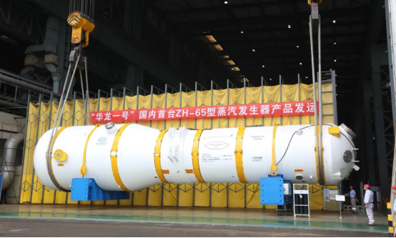 其中长约21米、重达390吨、直径约4.6米的庞然大物——“华龙一号”ZH-65型蒸汽爆发器,被工匠们亲热地唤作“核电之肺”。