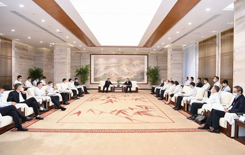 本网讯 9月27日,国家电网有限公司党组书记、董事长辛保安率队来访,受到集团公司党组书记、董事长俞培根,总司理、党组副书记徐鹏的热情接待。双方就携手效劳国家战略,推动能源清洁低碳转型,施展包管能源清静的“国家队”和“顶梁柱”作用,助力“双碳”目的实现举行了深入友好交流。国家电网党组副书记庞骁刚,集团公司纪检监察组组长、党组成员袁明刚,党组成员、副总司理李忠军加入谈判。