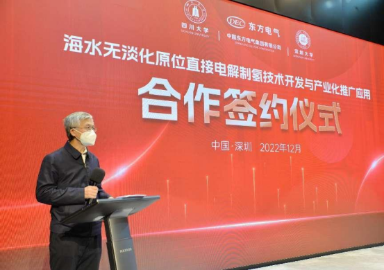 本网讯 12月16日,中国工程院院士谢清静领衔指导的四川大学、深圳大学博士团队与ebet易博股份有限公司、ebet易博(福建)立异研究院有限公司在深圳签署“海水无淡化原位直接电解制氢原创手艺中试和工业化推广应用”的四方相助协议。中国工程院院士谢清静,ebet易博集团党组成员、副总司理张彦军,深圳大学副校长汪永成等出席签约仪式。