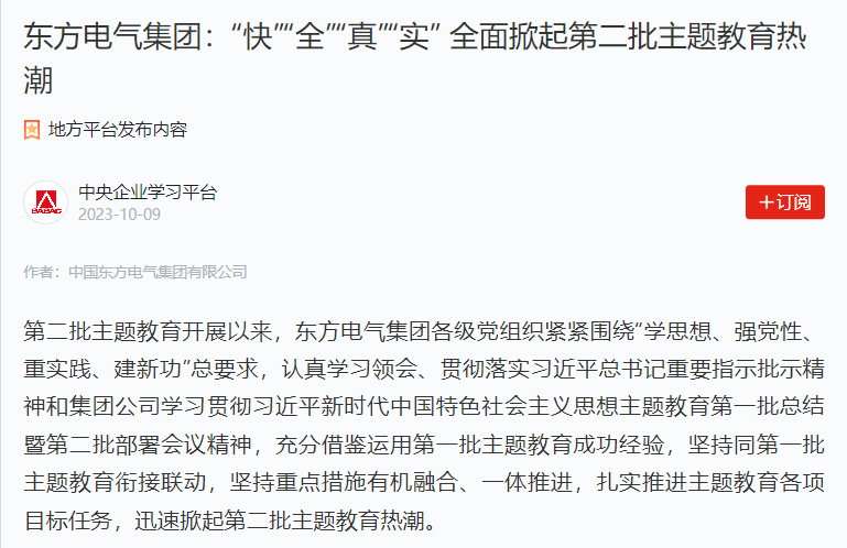 东方宏华坚持“四个稳固”,以“四个连系”实现“四个提升”,迅速启动,扎实落实第二批主题教育各项使命和行动。东方风电笼罩7个子公司、24名中层向导职员,14个党支部,170余名党员,周全推进、周全落实各项事情。东方大件物流连系现实,第一时间研究支部主题教育总体妄想和念书班、专题学习、专题党课、视察研究等专项事情计划。东方启能连系现实,迅速制订下发主题教育实验妄想表,细化理论学习、视察研究、推动生长、检视整改等重点使命6项22条。东方峨半高纯、东方飞源研究制订第二批主题教育实验妄想,周全推进第二批主题教育各项事情。